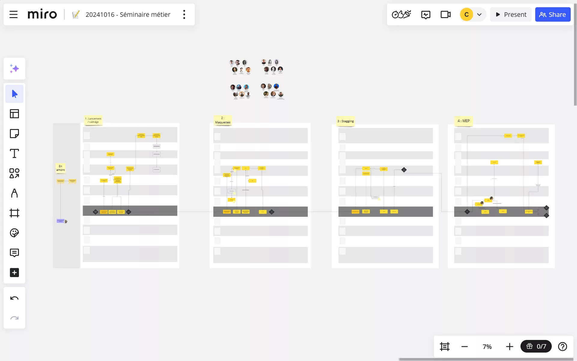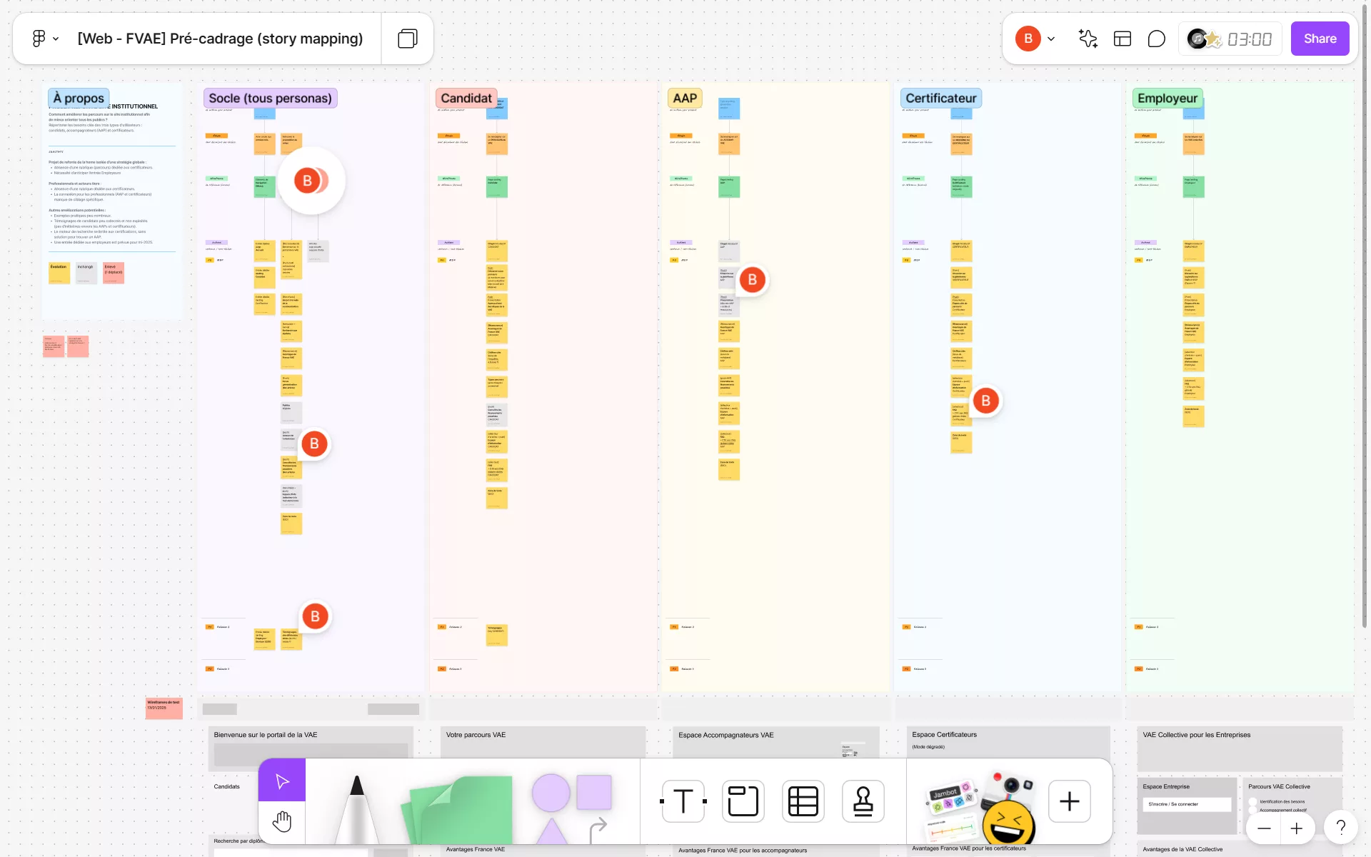 Je définis les objectifs et la hiérarchisation des contenus du site institutionnel ; pour la page d’accueil, les landing pages par persona et l’espace d’information (story mapping sur Miro).