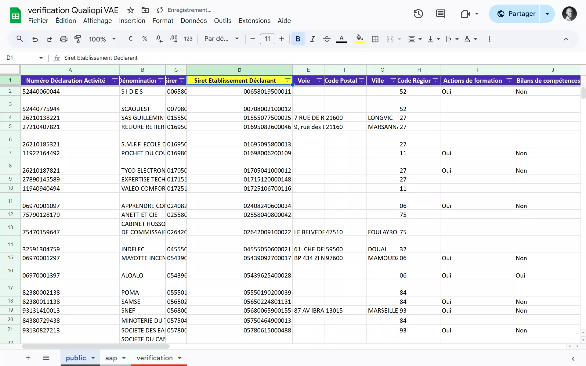 J’assure la mise en place de documents automatisés pour traiter les exports de données en masse (Excel, Google Sheets).